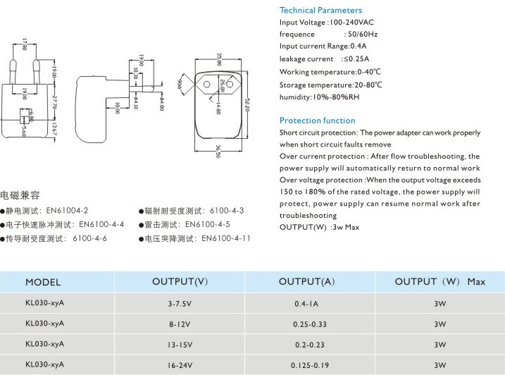 短路保護: 電源適配器在短路解除時(shí)能正常工作恢復