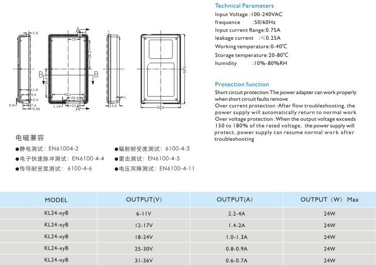 短路保護:電源適配器在短路解除時(shí)能正常工作恢復